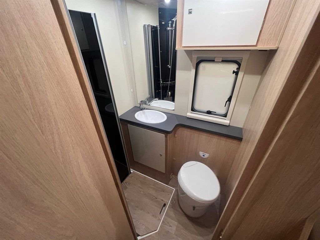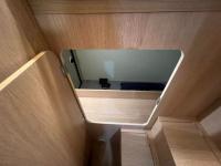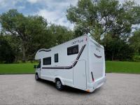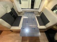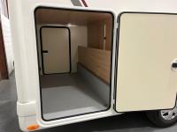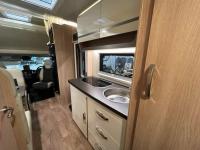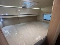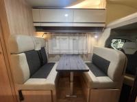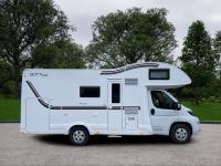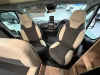 The motorhome is powered by the 2.2 Peugeot Boxer 140 BHP engine with cruise control, traction+hill hold+hill descent, Start-Stop, cab air conditioning, stereo, front fog lights and a passenger airbag. The cab is also fitted with built-in pleated blinds for privacy.