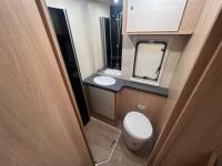 There is lots of room for food and drink storage in the tall 3-way fridge and separate freezer. A gas oven is fitted above these. The kitchen area has 3 gas burners.